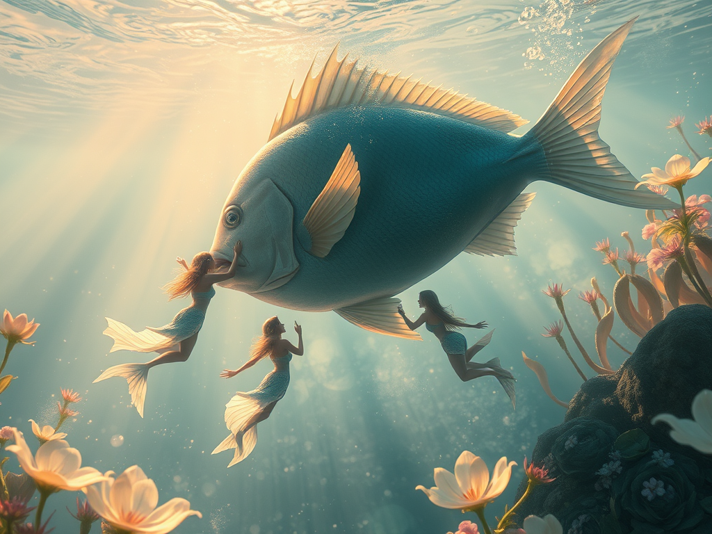 En el marítimo oleaje: un Poseidón fajando a las sirenas.